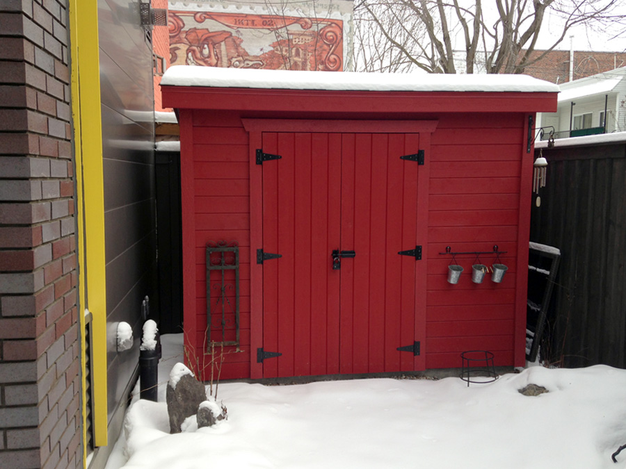 Le bâtiment a littéralement été déconstruit! Une grande quantité de matériaux ont trouvé une seconde vie dans un petit rayon de la rue Chambord. La brique provenant du mur double brique porteur arrière a été donnée pour la construction d'un four à pizza et d'un foyer extérieur. Le sous-plancher du rez-de-chaussée a servi de matériel à la fabrication de tables d'une micro-brasserie, et des éléments de la structure se sont invités dans son décor vintage. Une partie des portes et moulures de finition ont été réinstallées dans une maison au nord de Montréal. Pareil pour les armoires de cuisine du rez-de-chaussée, qui meublent désormais une autre habitation.