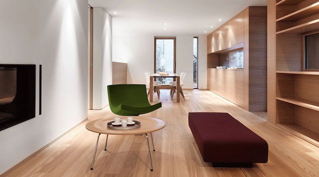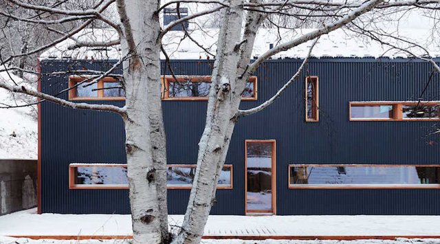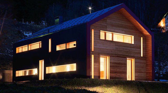 Le chalet suisse a bel et bien évolué. Conçu par la firme d'architeture Ralph Germann, ce chalet, construit pour résister aux rudes conditions hivernales des alpes suisses, en est un bel exemple. Le parement extérieur, fait à partir de matériaux locaux et certifiés par le label suisse Minergie, combine mélèze et revêtement métallique.