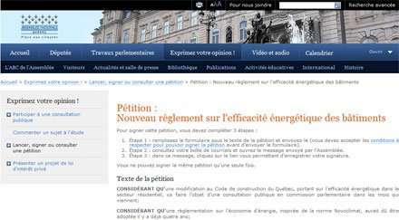 - Une bonne règlementation énergétique ne se passe pas d’inspections sérieuses. Les pétitionnaires demandent que la Régie du bâtiment du Québec (RBQ) soit chargée de son application (en collaboration avec les associations de constructeurs), et qu’elle mette en place un contrôle de qualité des inspections, via des tests d'infiltrométrie réalisés par échantillonnage, afin que l’étanchéité des constructions soit garantie.