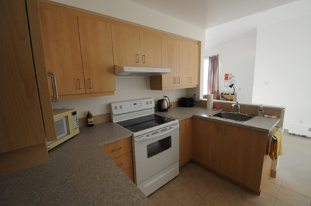 Ainsi, des matériaux sains à faibles émissions de composés organiques volatils (COV) ont été privilégiés. Par exemple, une partie des revêtements de sols sont certifiés FloorScore® , fabriqués à base de maïs et de matériaux récupérés (Biostride de Armstrong). Par ailleurs, les comptoirs et les armoires de cuisine et de salle de bain sont composés de panneaux de particules sans urée formaldéhyde ajoutée (NU Green® de Uniboard). L’OMH a même découvert que ce produit a un prix concurrentiel par rapport aux armoires de cuisine habituellement installées dans ses projets : un gros plus quand on sait que la majorité des COV qui se retrouve dans l’air ambiant d’une habitation provient des panneaux de bois aggloméré, le composant principalement utilisé dans la fabrication des armoires de cuisine et de salle de bain. Qui plus est, des appareils très efficaces de ventilation sont aussi installés sur le projet. Par exemple, le filtre à air choisi pour le VRC est de niveau MERV 13 ce qui dépasse de loin les standards habituels, même des projets LEED, qui tournent plus couramment autour de MERV 8. Des panneaux Sonopan® ont aussi été installés pour insonoriser les logements.
