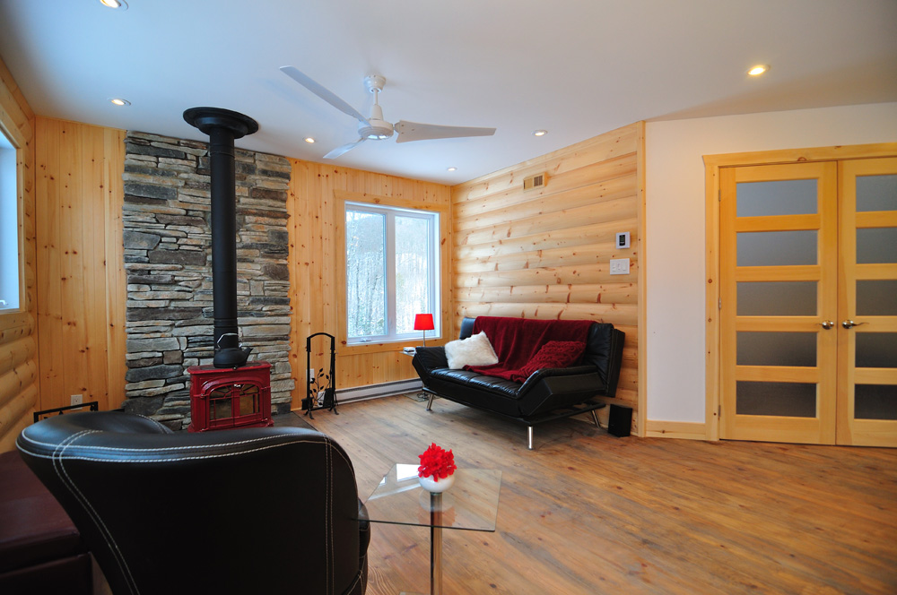 Cette maison neuve réalisée par Construction Jolin Fleury, située dans la région de Sherbrooke, a été conçue avec deux unités spacieuses et fonctionnelles pour accueillir deux générations. Une salle familiale additionnelle permet à la famille de se rassembler.