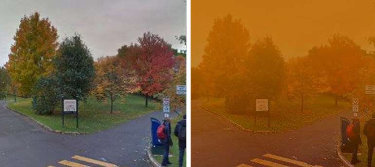 Le but du projet Ce Climat N Existe Pas n'est pas scientifique, mais pédagogique, psychologique. Inondations, smog, feux de forêts... À quoi ça ressemblerait, si la crise climatique arrivait à notre porte ? L'expérience en ligne permet aux utilisateurs d'imaginer les changements potentiels dans leur quartier, dans la ville où ils ont grandi, sur des sites touristiques célèbres, etc. : presque toutes les adresses disponibles sur Google peuvent être visualisées dans l’outil. Nous nous sommes prêtés au jeu.