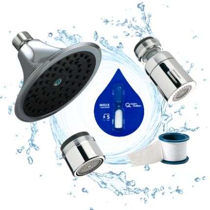Le principe est simple : il suffit de se procurer une nouvelle pomme de douche à débit réduit, de dévisser la vieille et de la remplacer avec la neuve. Nous avons testé le passage d’une pomme de douche à débit classique 9,5L /min à une pomme de douche faible débit de 6,6L/min : l’utilisation est la même et il n’y a pas de sensation « de faible débit d’eau ». Confort garanti ! Plusieurs options sont disponibles, il y a même une trousse avec pomme de douche à effet de pluie...