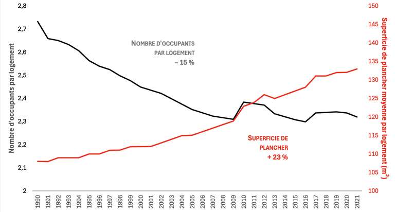 L’étude de HEC Montréal confirme qu’entre « […] 1990 [et] 2021, la surface moyenne des logements s’est accrue de 23 % […] »1