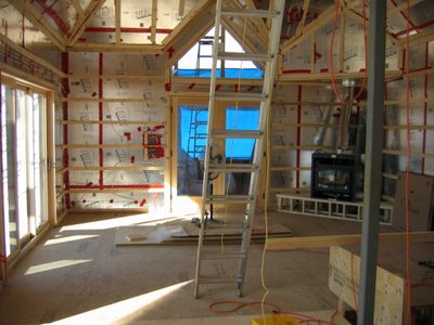 (pour protéger cavités murales de l'humidité intérieure par temps froid)Nouvelle construction à ossature de bois conventionnelle (2"x6"@16"). Revêtements extérieur et intérieur en bois (huilé); pas de revêtement intermédiaire; pare-intempéries utilisé. Isolation de cellulose.
