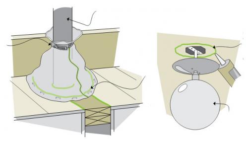 Sceller les ouvertures dans l'entretoit. Images tirées du guide "Emprisonnons la chaleur", Ressources naturelles Canada.