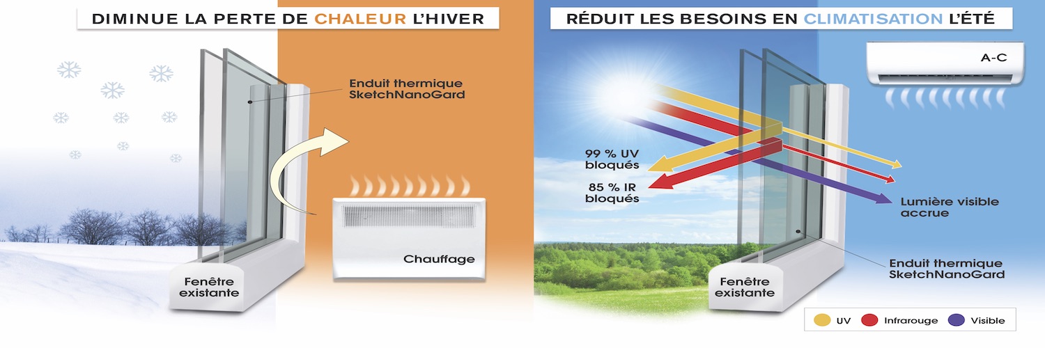 SketchNanoGard est un enduit nanotechnologique qui crée une barrière thermique sur vos vitres. C’est une solution simple et efficace pour améliorer votre confort tout en réalisant des économies d’énergie et une protection maximale.