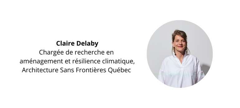 Claire Delaby est architecte, chargée de recherche en aménagement et résilience climatique chez Architecture Sans Frontières Québec. Depuis un an, elle développe son expertise sur l’adaptation des bâtiments aux inondations au Québec, notamment avec la cogestion d’une équipe multidisciplinaire et la production du référentiel Cohabiter avec l’eau. Elle cumule plus de dix ans d’expérience professionnelle dans la pratique et la recherche-action en architecture, notamment dans le domaine des stratégies durables en aménagement du territoire et d'architecture participative. Elle est titulaire d’un doctorat en architecture et urbanisme sur les cohabitats : nouveaux modes de faire la ville à Berlin (Allemagne). Son travail combine vulgarisation des connaissances et exploration d’innovations pour accompagner les usager·ères de la ville dans leur adaptation aux changements climatiques.