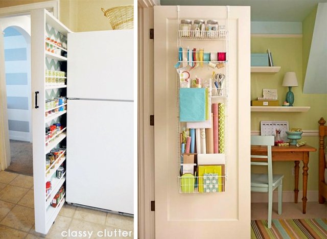 - Procurez-vous de la quincaillerie spécialisée pour accrocher chaussures, vêtements et autres accessoirs derrière les portes. Dans la plupart des cas, l'épaisseur du métal posé sur la porte permet encore une fermeture adéquate.
