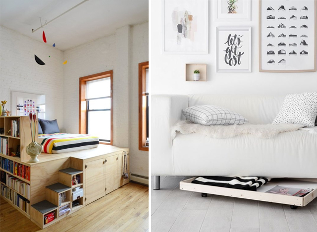 Profiter de l'espace autrement inutilisé contribue à réduire l'encombrement, mais plus important encore, cela permet de réduire le nombre de sacrifices à faire si l’on vit dans un petit espace. L'expérience reste ainsi bien plus agréable! La clé pour bien vivre dans un espace restreint consiste à trouver le bon équilibre entre posséder des objets personnels en nombre suffisant, sans toutefois vivre dans un encombrement constant.