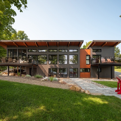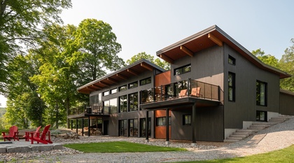 - Design contemporain avec toit cathédrale à pente unique, de style hangar