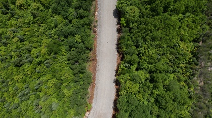 La forêt entoure la maison de tous les côtés, avec une vue imprenable sur une petite vallée, au sud, et sur une partie de la rivière, à 150 pieds à l’ouest de la maison. Pour ériger la maison, nous avons opté pour une colline, en grande partie pour cette vue qu’elle offre. Elle propose également une excellente exposition au sud, ce qui permet des apports solaires passif et actif. L’endroit, sec et venteux, est moins peuplé de mouches que les lieux environnants. Le vents présentent tout de même une lame à double tranchant, puisqu’ils augmentent probablement les charges de chauffage en hiver et qu’ils nous permettent de regarder les arbres tomber sous les fortes bourrasques hivernales, à moins de 20 pieds de la maison.