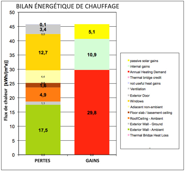 Fenestration : 35 fenêtres pour une superficie totale de 34 m² (366 pi²), dont 19% orientées Sud.