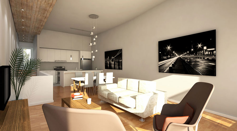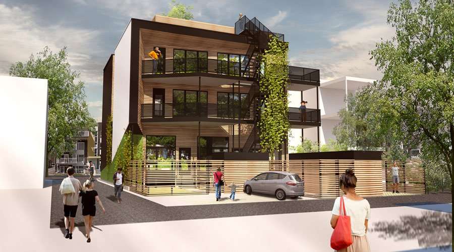 Ce projet phare de la firme TERGOS Architecture et Construction relève d’autres défis, dont celui de l’urbanisme durable. Il vise à densifier l’espace urbain et redonner vie à un terrain abandonné sur la 10e rue dans le quartier Limoilou. Le bâtiment de condos et maisons de villes modernes, ainsi que sa cour aménagée, offriront un cadre de vie agréable grâce à une conception qui maximise l’environnement naturel du secteur. De quoi éclipser en beauté l’ancien stationnement inoccupé !