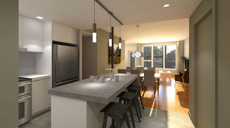 Soltice10e rend hommage au soleil, par son nom bien sûr, mais aussi par sa conception écologique basée sur l’orientation solaire passive qui maximise les gains de chaleur en hiver et la luminosité au gré des saisons. L’ingéniosité des architectes de la firme TERGOS Architecture et Construction écologique va permettre d’économiser minimalement 50% d’énergie par rapport à un bâtiment similaire répondant uniquement aux exigences d’efficacité énergétique du Code national de construction.