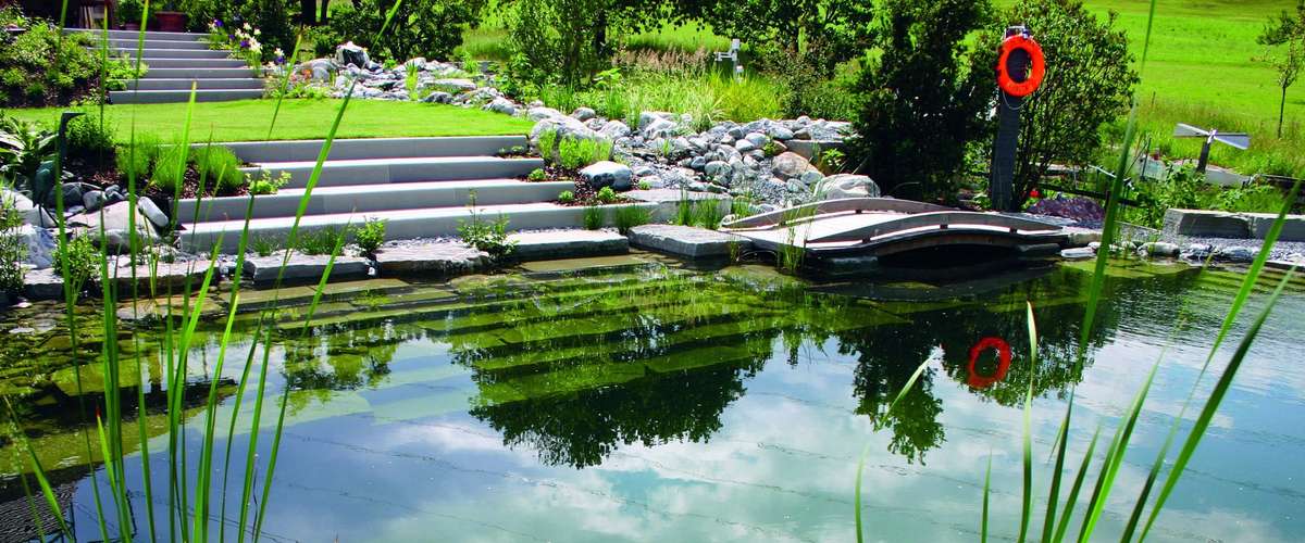 Afin que les végétaux s’épanouissent, les bassins ont généralement une pente de 30 % et le pH varie entre 6 et 7. Si le bassin est bien conçu et bien situé, il nécessitera moins d’entretien qu’une piscine conventionnelle.