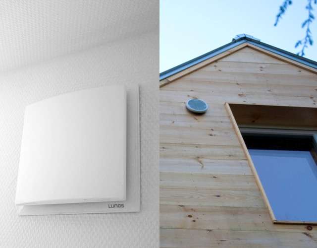 Le système Lunos e-Go fonctionne exactement selon le même principe, sauf qu’il comporte deux ventilateurs dans un même tube, lui permettant de fonctionner tout seul pour alimenter des salles de bain ou des pièces isolées, par exemple. Ne fonctionnant pas en paire, l’e-Go a une efficacité légèrement inférieure : 85 % selon les mêmes normes.