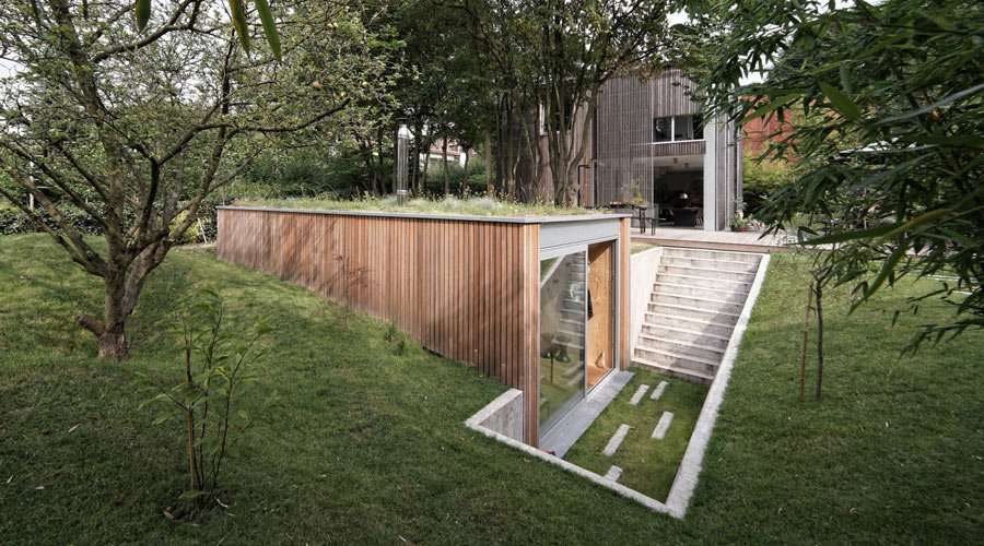 Travailler à domicile est de plus en plus fréquent, mais avoir un bureau à la maison peut gruger beaucoup d’espace. Ce studio, conçue par la firme d’architecture Belge l’escaut, utilise l’espace disponible dans le jardin. À moitié enfoui sous terre, il présente une superbe solution qui s’agence à merveille avec son environnement. Créé comme une extension à l’habitation principale, il reprend la même esthétique et utilise des matériaux semblables.