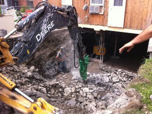 Cela est possible, mais à coût très très élevé. Une famille du Plateau Mont-Royal ayant effectué de telles rénovations a déboursé 120 000$. Il est aussi possible de soulever la maison et d'agrandir vers le haut. Cette façon de faire a l'avantage de créer un sous-sol plus lumineux. Il ne faut pas perdre de vue que soulever une maison est un travail délicat, surtout si elle est âgée. Les bâtiments en maçonnerie massive sont quasi impossibles à soulever sans causer de dommages.