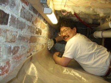 Pose d'isolant ou pare-vapeur dans le plancher au-dessus du vide sanitaire.