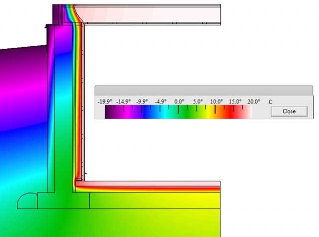 L’image ci-dessous présente les variantes thermiques d'un sous-sol isolé sur ses deux côtés. La valeur R s’élève à R-40. Notez l’absence de ponts thermiques et la stabilité des températures, malgré une différence de 40 degrés entre l’intérieur et l’extérieur. L’investissement pour rester au chaud en vaut le coût!
