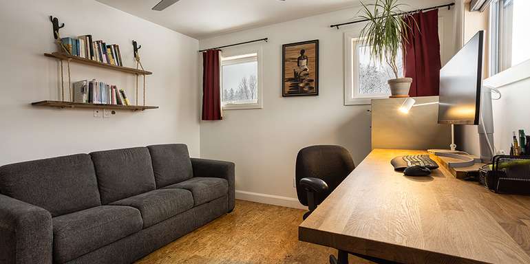 Le poids financier relié à la démolition de la Maison Jaune nous à contraint à la créativité pour ficeler un budget réaliste et audacieux. En réfléchissant sur nos réels besoins nous avons réalisé que nous pouvions réduire notre espace habitable et diminuer ainsi les coûts de construction. Ainsi, nous avons été créatif pour maximiser les rangements et usages complémentaires dans plusieurs parties de la maison comme la chambre d’ami qui se transforme en bureau, salle de yoga ou salle de jeu pour les enfants!