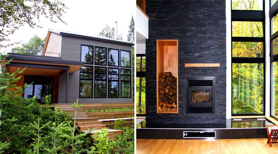 - Des matériaux durables de haute qualité : toiture d’acier, finition intérieure d’ardoise (pour le manteau du foyer), comptoirs de quartz, garde-corps de verre, plancher de béton, panneau de béton mural et céramique composant 80% de toutes les cloisons de la salle de bain.