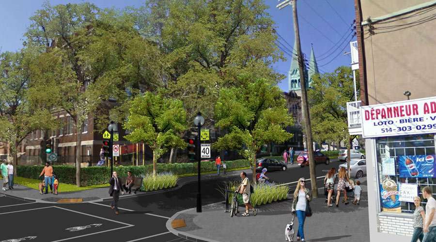 Angle des rues Adam/Pie IX, actuellement et quand le quartier vert Maisonneuve aura pris forme © Ville de Montréal