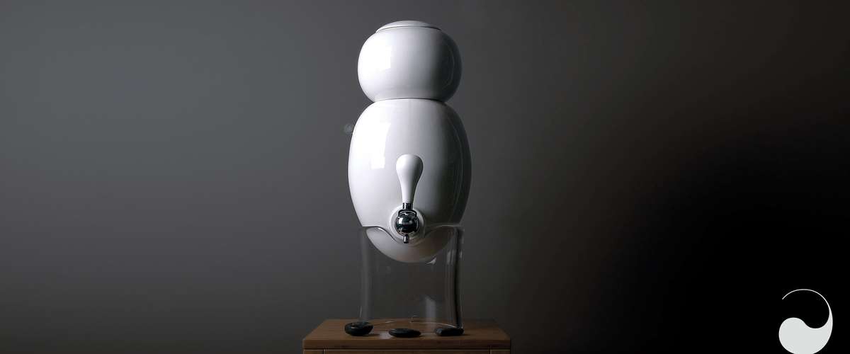 Une bonbonne en porcelaine qui contient et purifie l’eau du robinet, pour limiter la présence de chlore, de métaux lourds, des algues, des champignons, du calcaire, des résidus de médicaments...