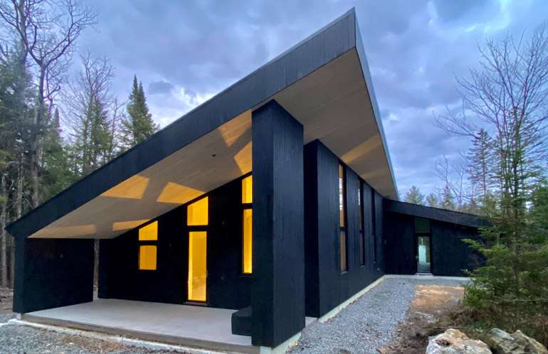 - parement extérieur en bois brûlé (Shou-sugi-ban);