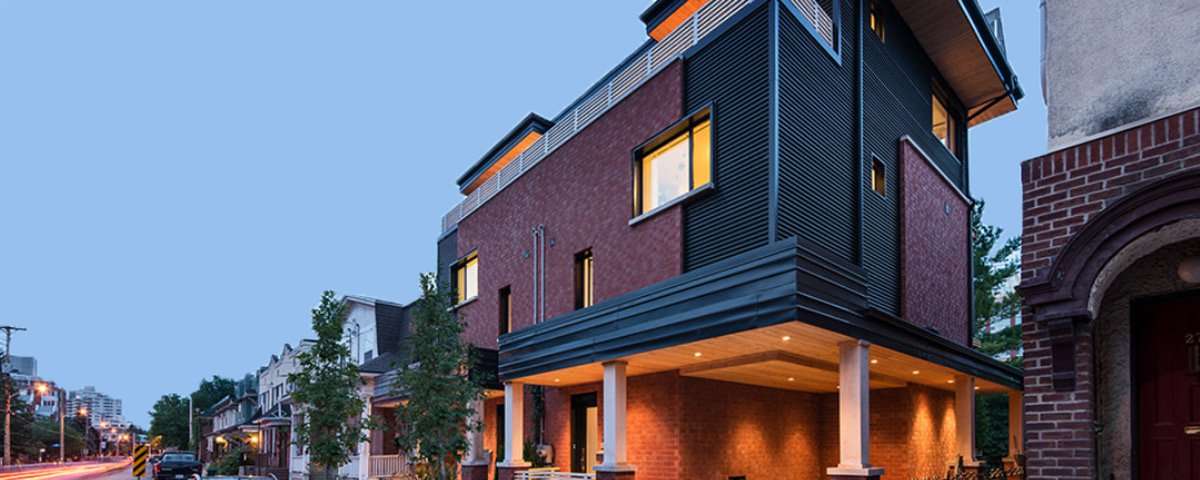 La maison de 3 300 pieds carrés ne coûte que 10 % plus chère qu'une maison conventionnelle et utilise 90 % moins d'énergie. Le duplex, qui a été conçu par Chris Straka de la firme VERTdesign Inc. et évalué par Ross Elliott, évaluateur chez Homesol Building Solution et membre de Passive Building Canada, a également été certifié LEED Canada pour les habitations, niveau Platine.