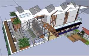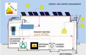 Afin de minimiser les besoins énergétiques et d’assurer entre 60 et 80 % d’autonomie à la Maison productive, le concepteur devait assurer un excellent apport en solaire passif et isoler la maison au-delà des normes. Ainsi;