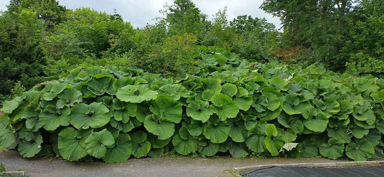Une autre plantes aux proportions étonnantes, ses feuilles atteignent 80 cm de diamètre! Les jardiniers perdent rapidement le control de la croissance de ce pétasite énorme utilisé à des fins ornementales et vendu en pépinière. Il forme des colonies rapidement au printemps, ce qui empêche les autres espèces indigènes de croitre Et il peut s'échapper pour pousser en bordure des forêts ou des routes. On vous recommande vivement de ne pas le planter et de vous atteler à l'éliminer avant qu'il ne prenne trop de place.