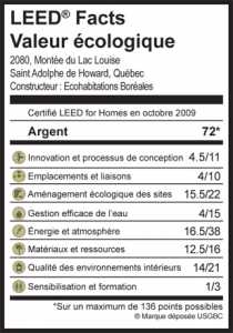 Écohabitations Boréales inc. a travaillé pendant plusieurs mois à la conception et à la réalisation de la résidence Lac Louise et tout ce travail a porté ses fruits. Cette maison au design performant et écologique vient tout juste d’obtenir le niveau argent de la certification LEED pour les habitations et démontre ainsi qu’il est possible de construire des maisons écologiques pour un coût équivalent à celui d’une construction traditionnelle de qualité.