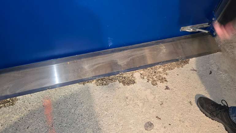 • Pour chacune des portes, un cadre de porte en bois était superposé au béton de la fondation à des fins de finition. Ce type de construction est très répandu au Québec. Avec les années, l’infiltration d’eau peut faire pourrir le bois. Il est donc préférable de le retirer et d’installer la porte directement sur le béton des fondations, ce qui assure une meilleure étanchéité ;