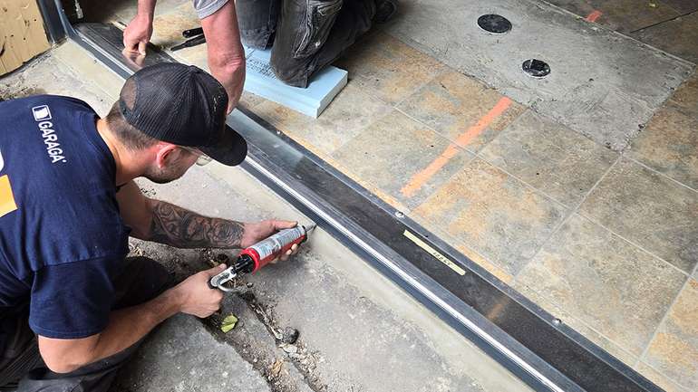Inondation de l'entrée pour tester la porte de garage étanche.