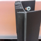 POSE: Caoutchouc synthétique qui s'insère dans une fente en bois, lorsqu'une structure rigide est déjà présente. Doit être jumelé à une bande rigide quelconque.