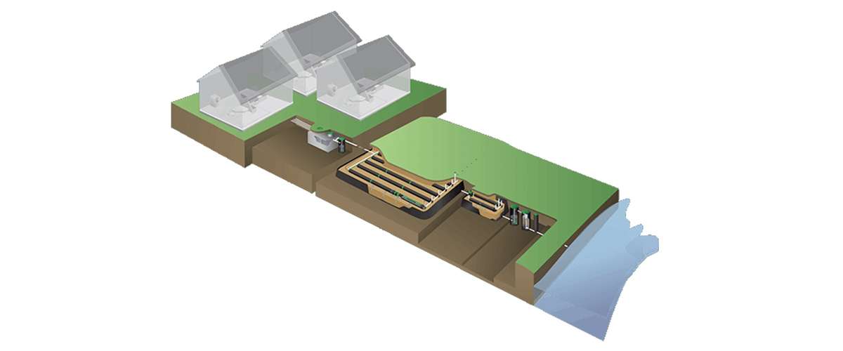 En milieu rural, le traitement semi-collectif allie les avantages des traitements municipaux tout en diminuant les coûts d’infrastructures et d’entretien des systèmes individuels.