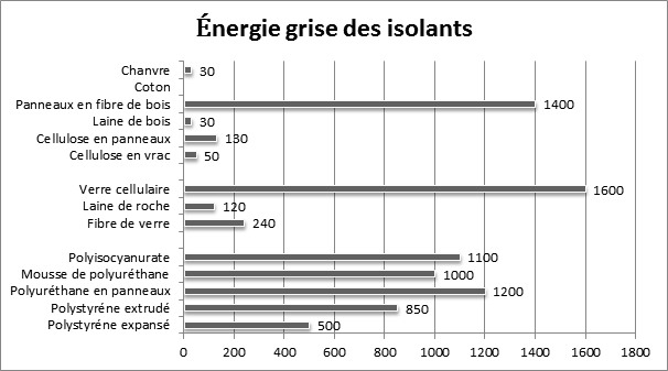 Le graphique suivant concerne l'énergie grise, soit l'énergie dépensée pendant tout le cycle de vie du matériau.