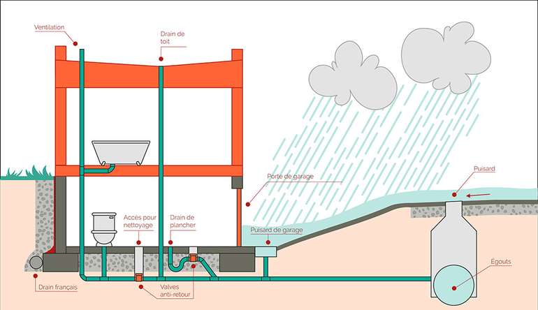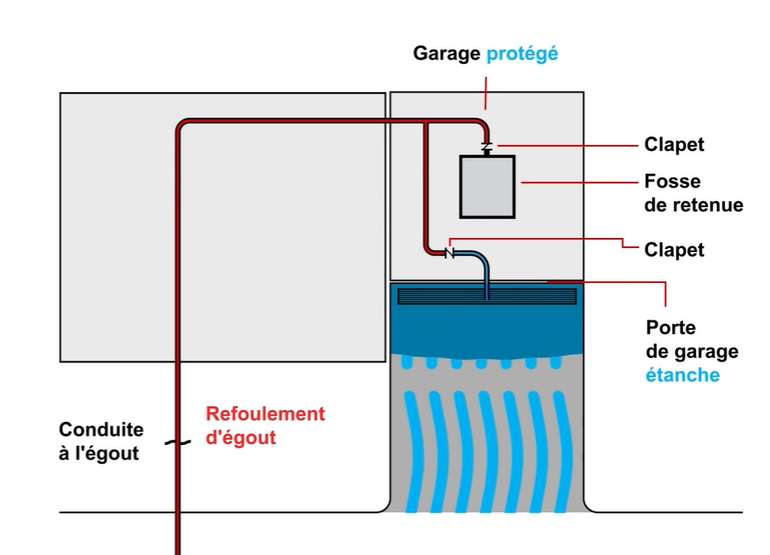 Sans portes étanches et des clapets antiretour: l’eau pénètre par les ouvertures et les égouts saturés refoulent par le drain de plancher créant des dommages au bâtiment.