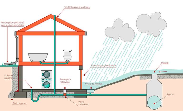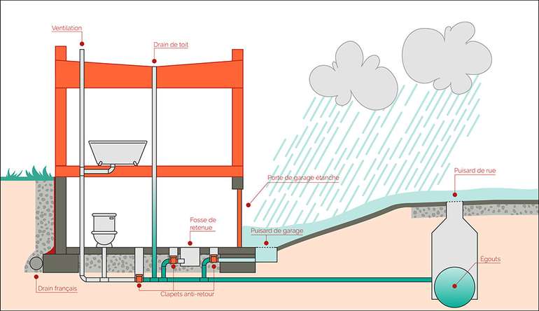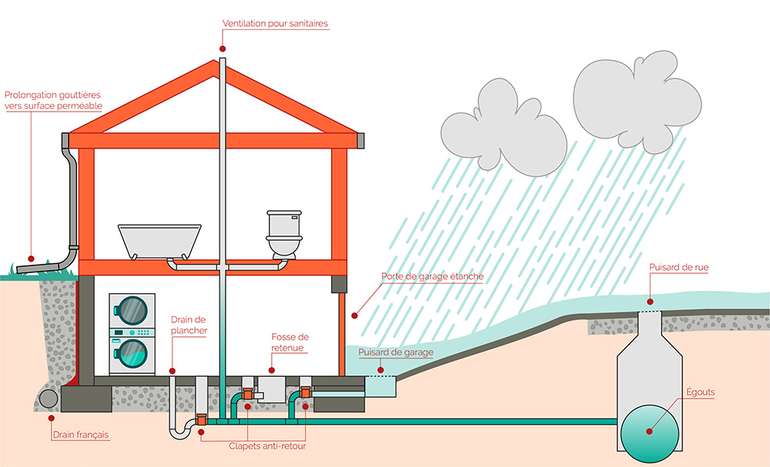 Par exemple, l'utilisation de clapets antiretour est une mesure efficace qui a fait ses preuves pour protéger la maison contre les inondations dûes au refoulement des égouts surchargés lors des fortes pluies.