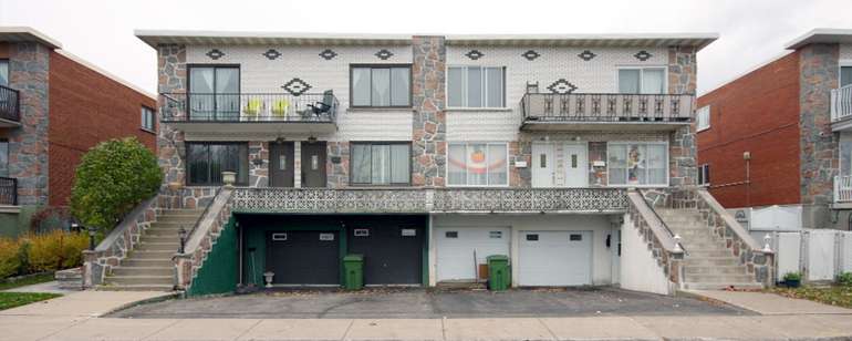 Les risques d’inondations dans ces quartiers sont encore amplifiés par un paramètre architectural : les bâtiments multilogements dotés d’entrée de garage en contre-pente accusent plus de dégâts que les autres. Or, au cours des années 1960, cette typologie de bâtiment résidentiel se multiplie à un rythme soutenu : des quadruplex jumelés avec un garage au sous-sol sont construits, notamment sur les terres municipales de Saint-Léonard où sont accueillis plus de 40 000 nouveaux arrivants[4]. On retrouve la typologie de bâtiments multilogements avec un garage en contre-pente dans les arrondissements de LaSalle, Anjou et Rivière-des-Prairies–Pointe-aux-Trembles, ou encore dans les zones suburbaines de la Rive-Nord et la Rive-Sud.