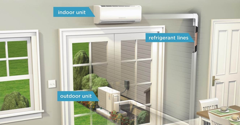 Les thermopompes à basse température appelées unités sans conduit (ou murale) ne sont pas reliées à un système de distribution de chauffage central (air pulsé ou eau). Elles sont reliées directement à une unité murale. Il est possible de raccorder jusqu'à huit unités intérieures distinctes à une unité extérieure, bien que l'installation optimale consiste à raccorder une unité intérieure à une unité extérieure.
