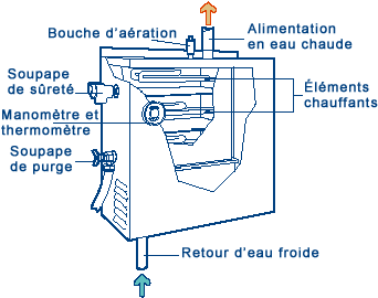 Son principe de fonctionnement est simple : chauffer l’eau grâce à des résistances électriques puis l’acheminer vers le réseau de distribution. C’est le même principe que celui de la bouilloire électrique. Le mouvement de l’eau est assisté par une pompe afin de faciliter sa circulation.