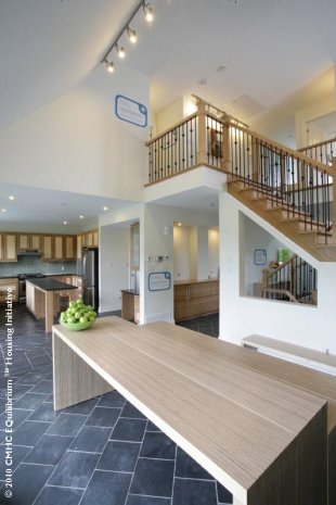 Inspiration ™ est une des maisons de démonstration EQuilibrium™, une initiative de logement national pilotée par la SCHL. Elle réunit les secteurs public et privé dans le but de créer des maisons axées sur la santé et le confort des occupants, l’efficacité énergétique, la production d’énergie renouvelable, la conservation des ressources, la réduction des impacts sur l’environnement et l’abordabilité. Voici des exemples de la grande diversité de solutions proposées par les équipes de constructeurs sélectionnées dans le cadre de l’Initiative des habitations durables EQuilibrium™.