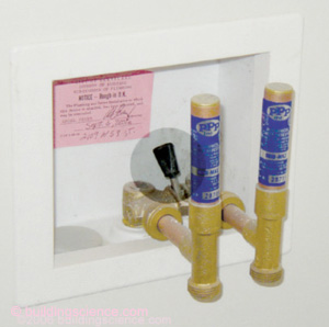 Une des mesures à intégrer au projet est d'installer un drain sous chaque machine à laver et chauffe-eau situé au dessus d'une pièce d'habitation OU un robinet d'alimentation unidirectionnel.