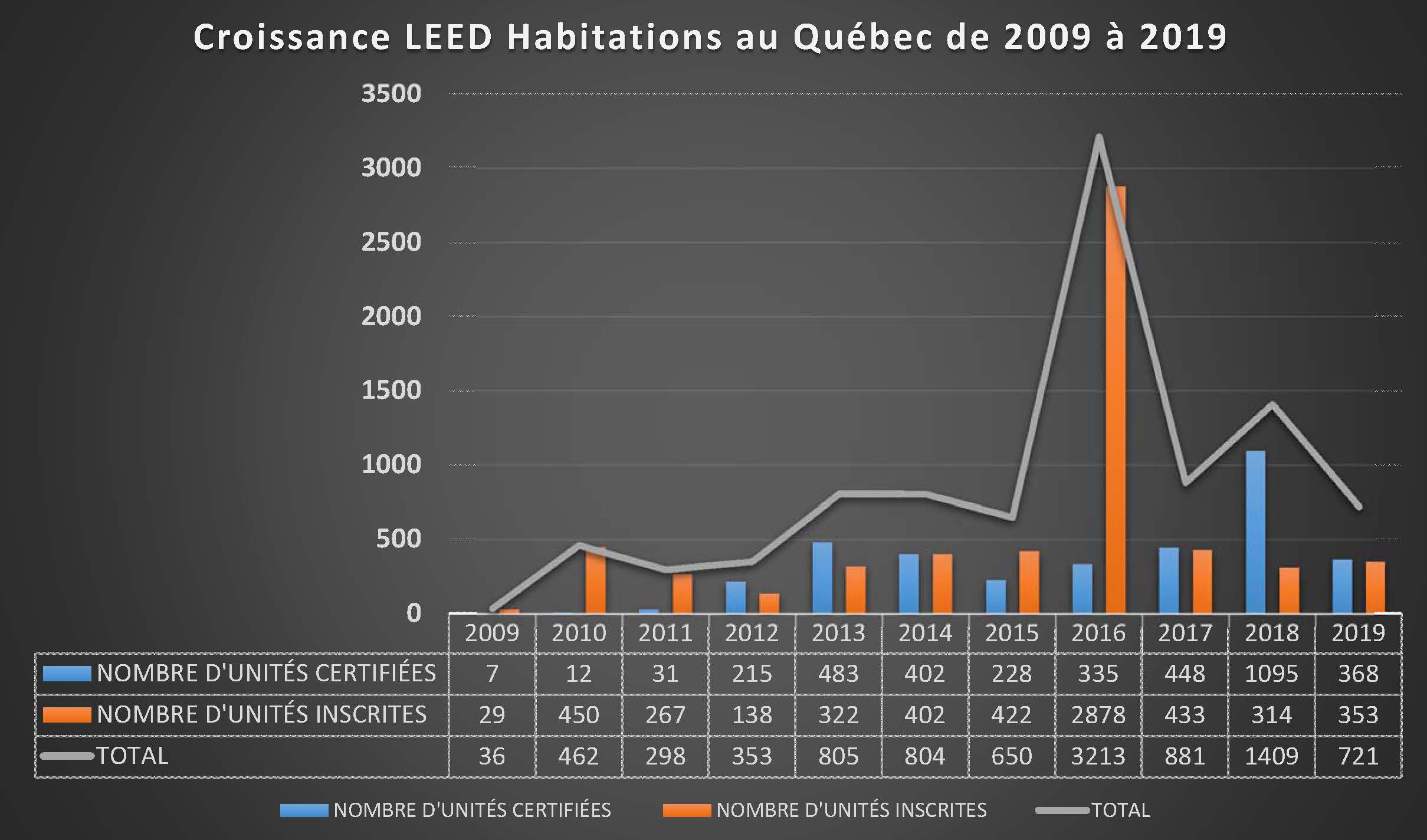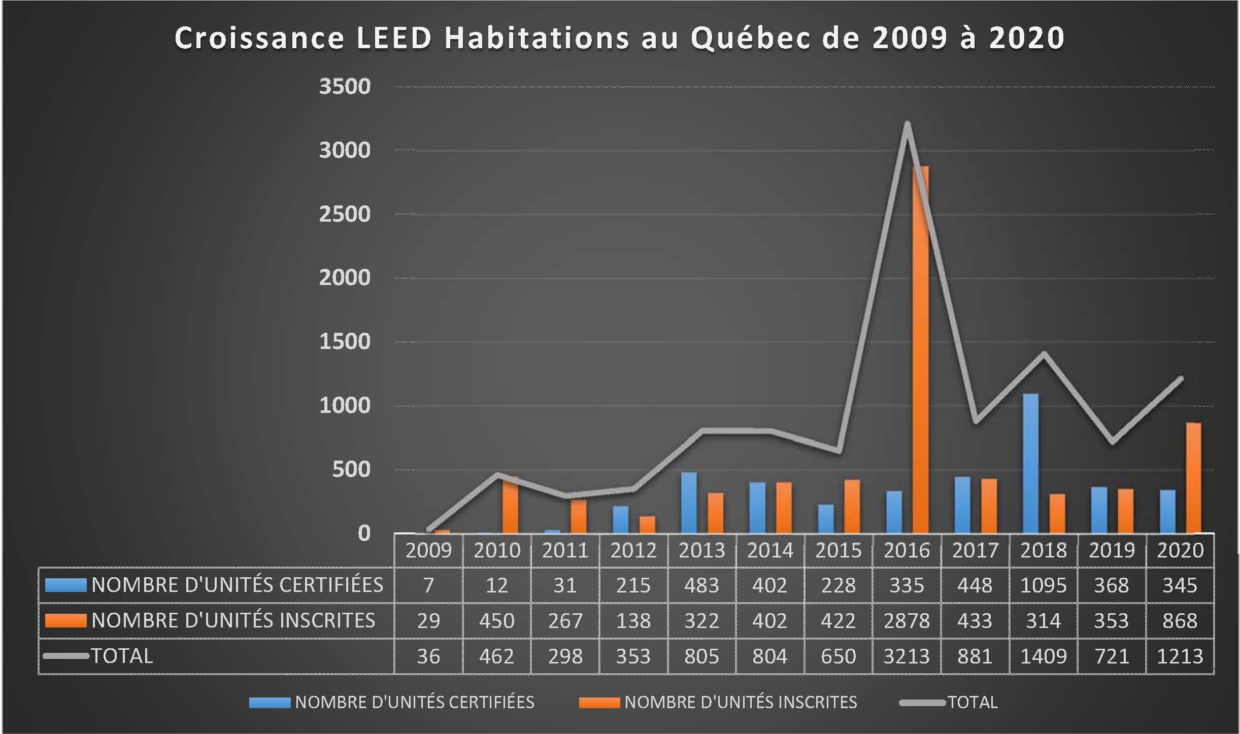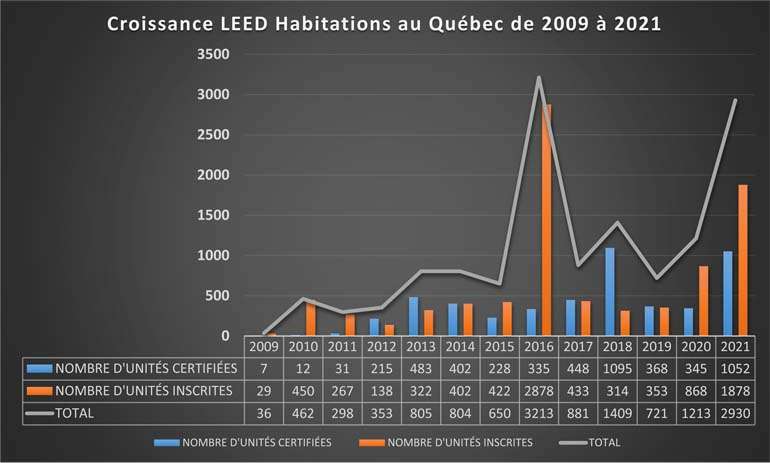 La croissance LEED® habitations au Québec de 2009 à 2021