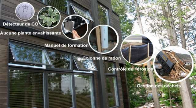 La force du système de certification LEED Canada pour les habitations repose sur sa capacité à guider et reconnaître les efforts des constructeurs sur les nombreuses caractéristiques qui nous permettent de distinguer les bâtiments "durables" des autres. Ainsi, "LEED encourage une approche holistique envers la durabilité en reconnaissant le rendement dans cinq secteurs clés de la santé humaine et environnementale comprenant notamment l'aménagement écologique des sites, la gestion efficace de l'eau, l'efficacité énergétique, le choix des matériaux et la qualité des environnements intérieurs."