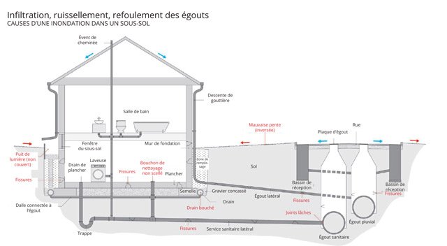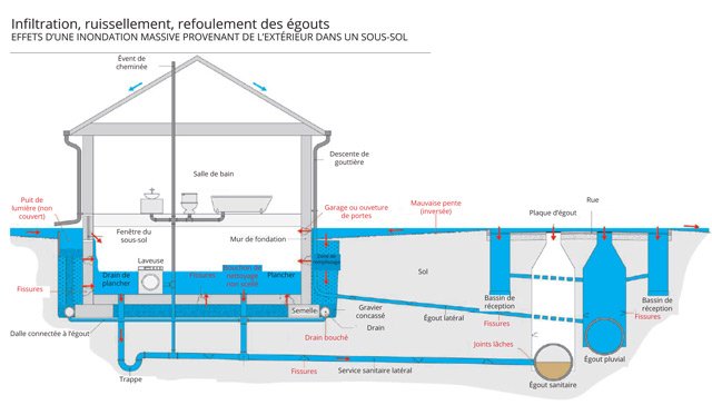 Selon la Corporation des maîtres mécaniciens en tuyauterie au Québec (CMMTQ) et la Régie du bâtiment du Québec (RBQ), le refoulement des eaux d’égout et les dégâts d’eau sont classés parmi les causes de réclamation les plus fréquentes auprès des compagnies d’assurance habitation. Et dans de nombreux cas, les dégâts dus aux inondations du sous-sol ne sont pas assurables!