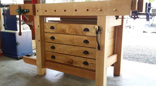 Pour Philippe, KUNOS est un produit phare. « Si on respecte bien les consignes d’application, le fini est très beau et très résistants. J’en ai appliqué moi-même un peu trop la première fois, mais on fait tous cette gaffe. Depuis, j’ai un réel plaisir à travailler avec ce produit, et le plus merveilleux, c’est que le bois semble heureux. Je l’ai utilisé sur du noyer, de l’orme, du carrier, chêne rouge, de l’érable... Pour la finition, c’est difficile de trouver meilleur produit. Facile à réparer, pas trop glissant, le seul bémol relevé par mon entourage est que la place de mon établi (ci-dessous) devrait plutôt être au salon… et non dans l’atelier! ».